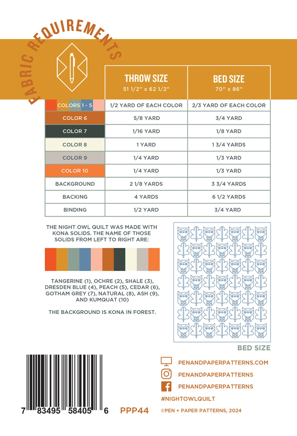 De Night Owl quiltpatroon van Pen + Paper Patterns wordt traditioneel samengesteld en bevat instructies voor twee maten.