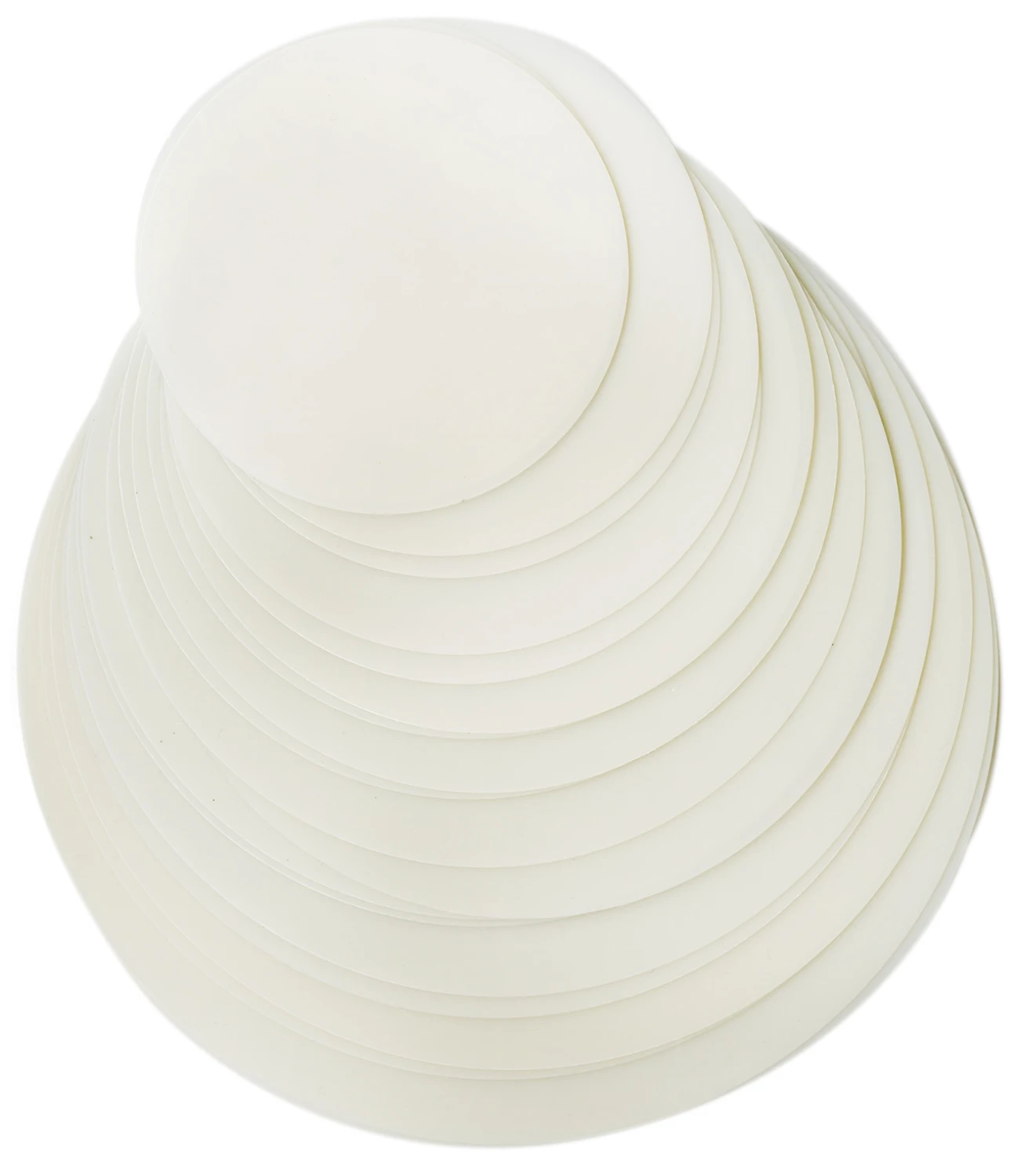 Elke verpakking van Bigger Perfect Circles® bevat 10 verschillende maten, variërend van 2 1/4 inch tot 4 1/2 inch. Je krijgt van elke maat 2 stuks, in totaal dus 20 cirkels per verpakking.