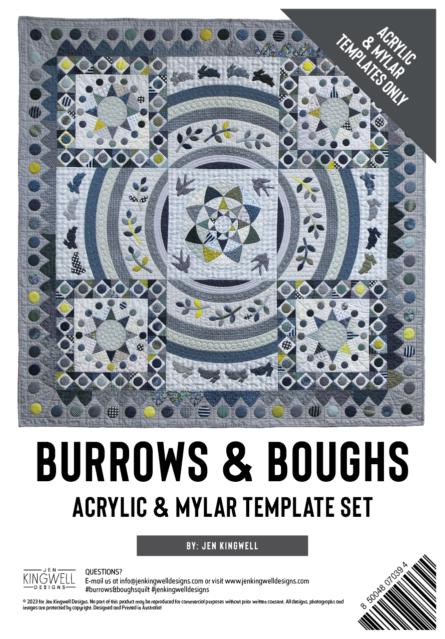De Burrows + Boughs Acrylic and Mylar Template Set van Jen Kingwell is speciaal ontwikkeld voor het maken van de prachtige quilt Burrows & Boughs. Deze complete templateset combineert duurzame acryl snijtemplates met hittebestendige mylar templates voor applicatie, zodat je met maximale precisie en controle kunt werken.