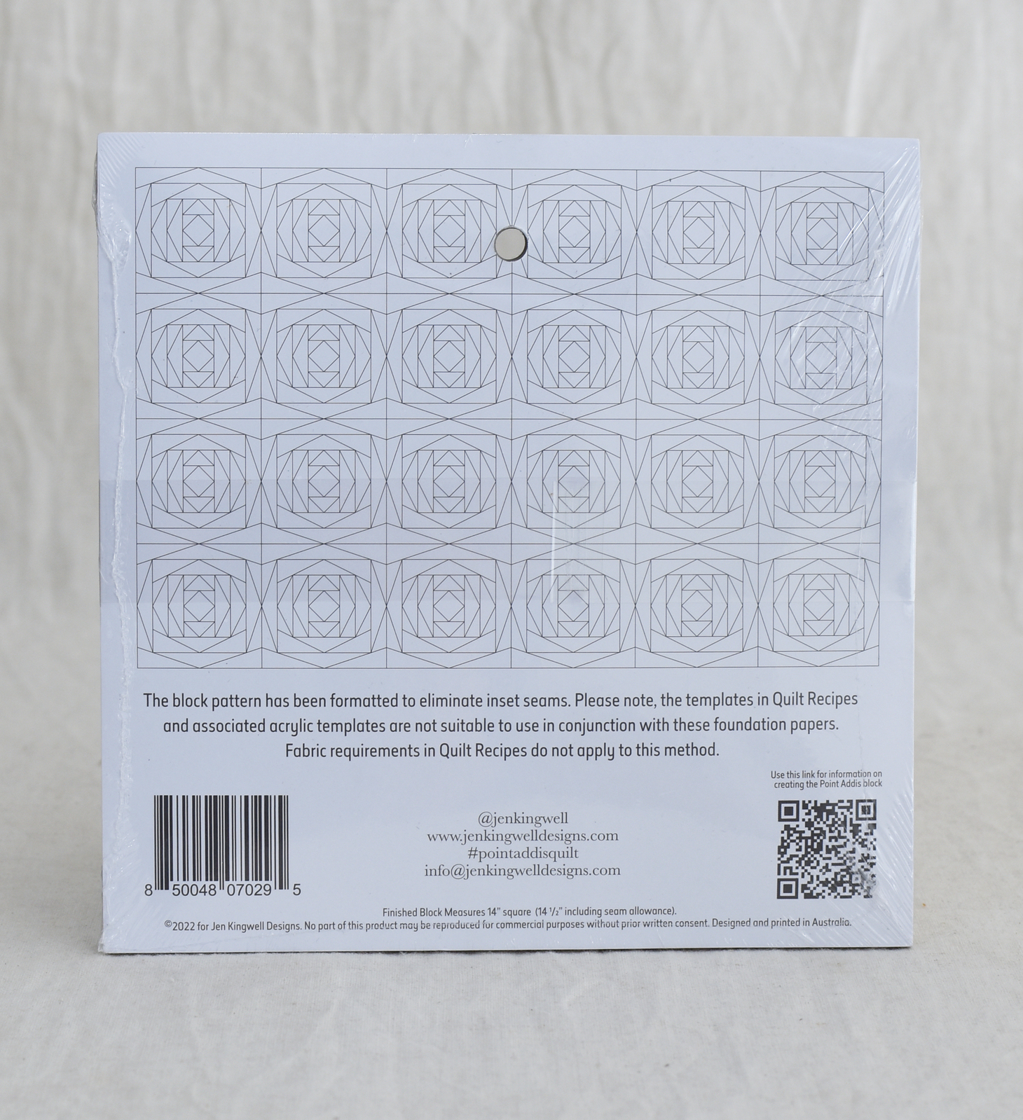 Een set foundation papers van Jen KIngwell Designs om het block Point Addis uit het boek Quilt Recipes te maken. Er zitten 30 sheets in een verpakking.
