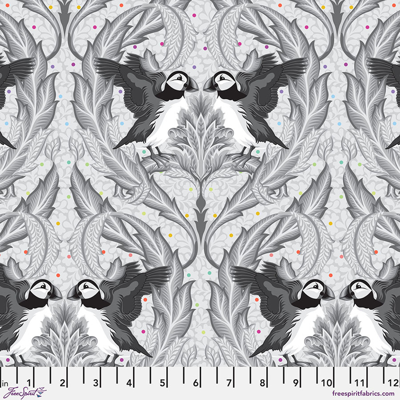 Een print, de Huffin & Puffin uit de serie 'Graywork' van Tula Pink voor Free Spirit Fabrics.